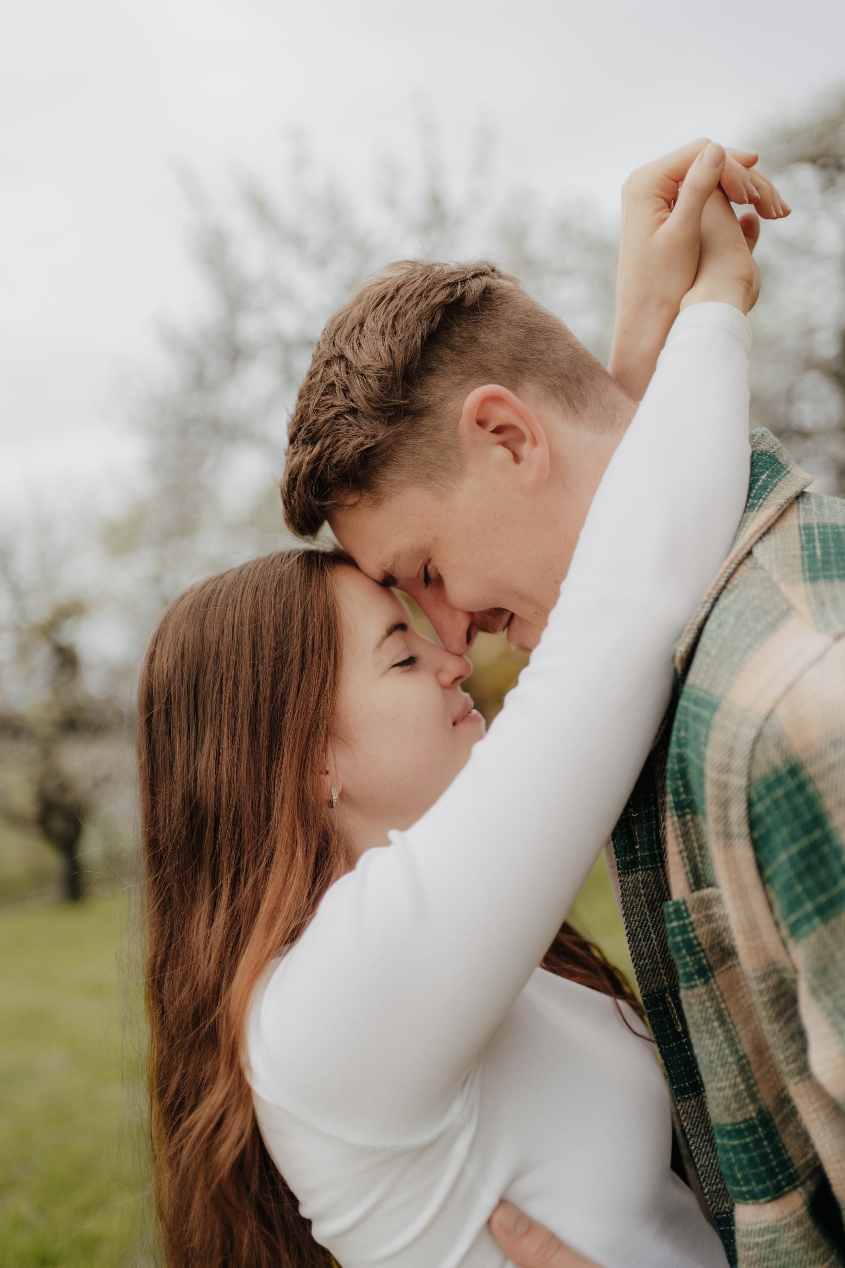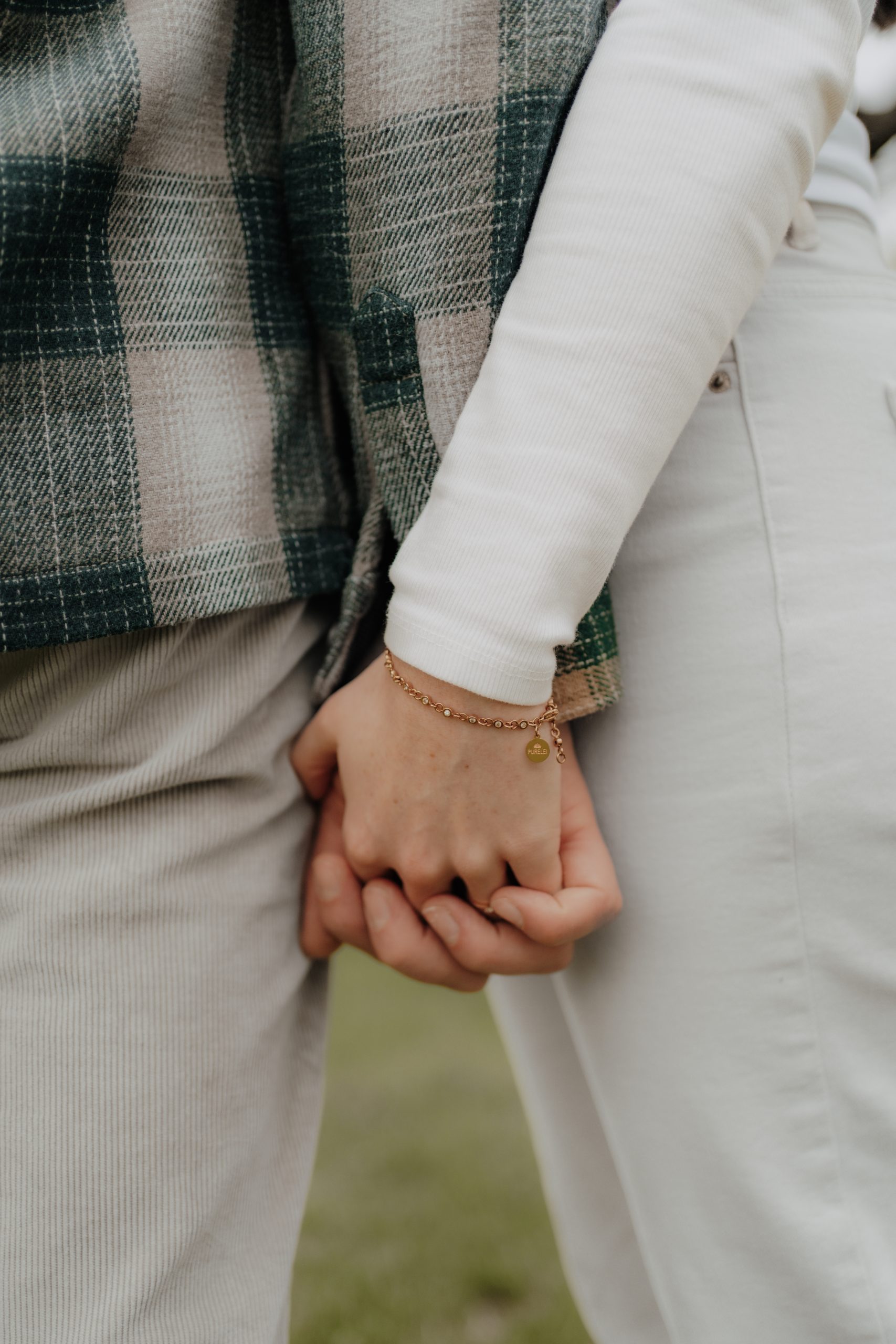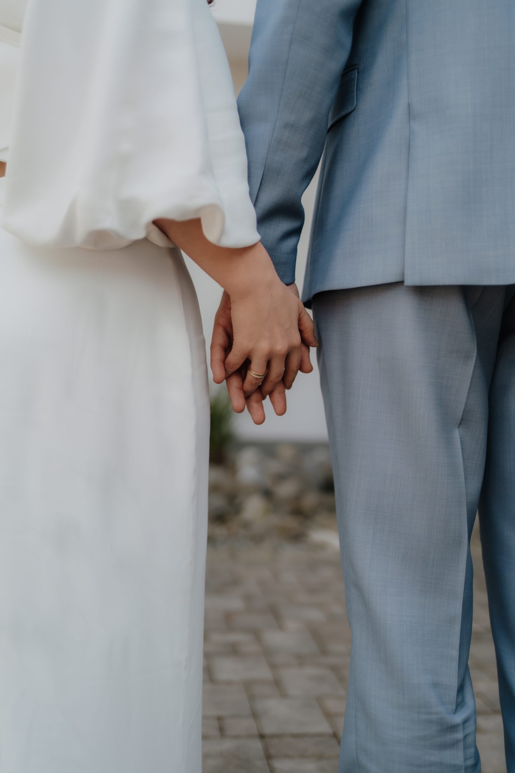 Für stimmige, zeitlose Bilder wählt ihr am besten Kleidung in natürlichen Tönen oder gedeckten Farben. Diese wirken auf Fotos besonders harmonisch, ergänzen sich gut und lenken nicht vom Wichtigsten ab – euch! Besonders schön wirkt es, wenn eure Outfits farblich aufeinander abgestimmt sind, ohne identisch zu sein. Vermeidet möglichst auffällige Muster und große Logos, da sie schnell störend wirken können. Wichtig ist aber auch, dass eure Kleidung zu eurem Shooting und euren Vorstellungen passt: Ihr wollt ein aufregendes Verlobungsshooting in auffälliger Abendkleidung und mit Sektdusche – dann lasst uns genau solche Fotos erschaffen! Am allerwichtigsten ist, dass ihr euch wohlfühlt. Eure Kleidung soll zu euch passen und eure Persönlichkeit unterstreichen – so entstehen die schönsten, authentischsten Aufnahmen.
